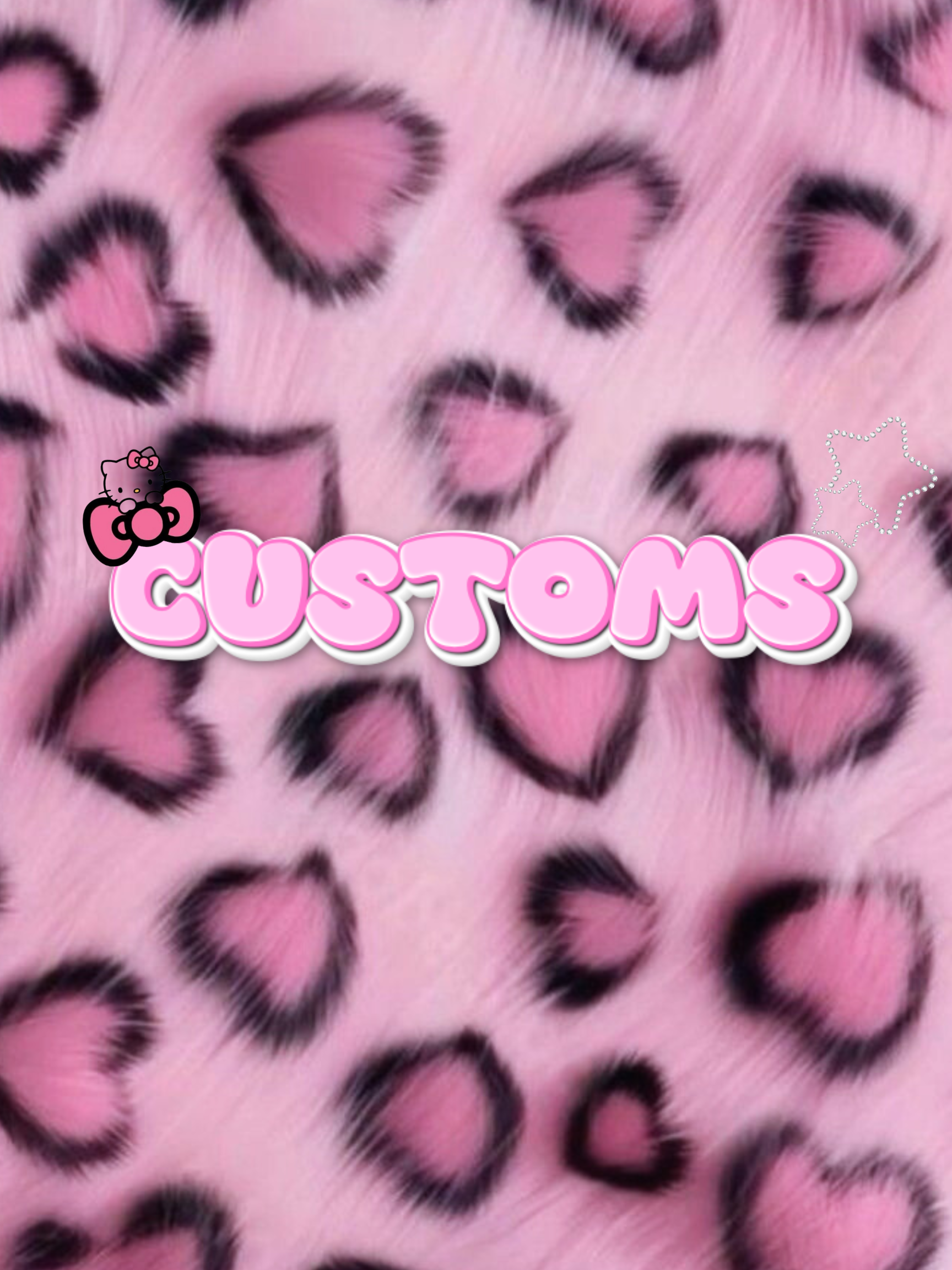 A colorful pattern featuring pink, black, and white hearts, stars, and sparkles, with the repeated message "All customs must be payed in full, Effective Jan 2026," alongside images of large diamonds.